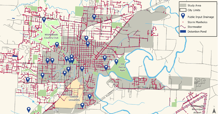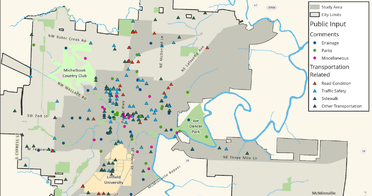 3J conducted an infrastructure assessment for the City of McMinnville, identifying deficiencies for roads, sidewalks, parks, water, stormwater, wastewater and public facilities. The project focused on infrastructure in underserved communities. 3J led a public outreach campaign that included the use of an online web map where community members could provide feedback on areas they would like to see fixed. The comments were the basis for evaluating the existing infrastructure and infrastructure plans. The final product was a memo identifying deficiencies and remedies supported by maps and data. 3J’s recommendation will inform the City on future projects while prioritizing investments using an equity lens.