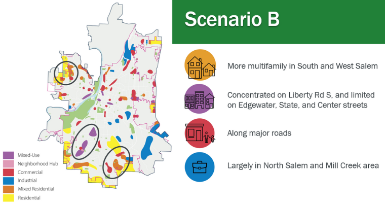 3J team members led the update of Salem’s Comprehensive Plan Our Salem, a multiphase project to update the Salem Area Comprehensive Plan to guide and plan for how and where the City will grow. The project included a community vision, scenario planning, comprehensive plan update, comprehensive plan map, zoning map, and zoning code updates. The plan has goals, policies, and maps that shape everything from where multifamily housing is built, to how the street system is designed, to how natural resources are protected. 3J’s GIS services used Envision Tomorrow to develop alternative growth scenarios that were used as the basis for regional transportation modeling and transportation forecasting. City Council adopted the updated plan and other associated changes on July 25, 2022. The City is now working on a variety of projects to implement and advance the goals and policies in the updated Comprehensive Plan.